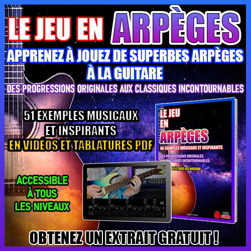 CE QUE VOUS ALLEZ OBTENIR : Cet extrait gratuit contient 4 des 51 exemples de progressions d'arpèges inclus dans le pack pédagogique "Le Jeu en Arpèges" avec Vidéos, Tablatures et Diagrammes d'Accords. Vous pourrez également télécharger un PDF contenant ces tablatures et diagrammes. 3 Progressions d'Arpèges originales ainsi qu'une version en arpèges du morceau Hotel California. Remplir le formulaire ci-dessous pour recevoir votre accès gratuit par email. (Votre adresse email ne sera jamais partagée ou vendue et vous pouvez vous désabonner en un clic à tout moment.)